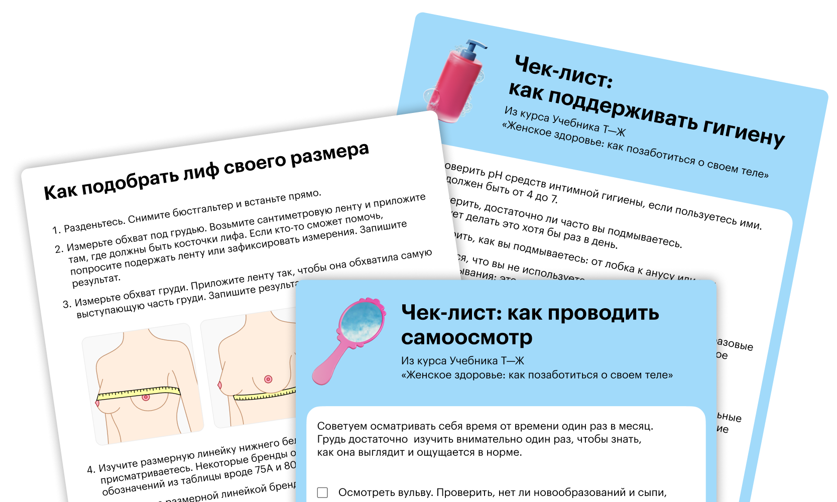 Уроки написали авторы Медредакции Т—Ж: они не навязывают единственно верное решение всех проблем, а рассказывают о женском здоровье бережно и аккуратно, без давления и ярлыков. У всех рекомендаций есть ссылки на источники и проверенные ресурсы, где можно углубиться в тему. Вас ждут введение и пять текстовых уроков. Внутри найдете иллюстрации, чек-листы и примеры, которые помогут разобраться в теме или убедиться, что вы и так все делаете правильно.