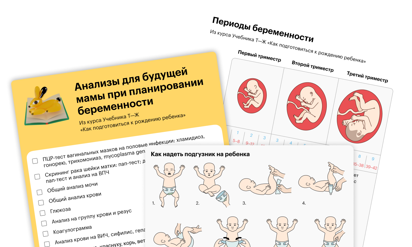 В курсе 17 текстовых уроков — от планирования беременности до первых месяцев жизни ребенка. Мы собрали в одном месте все, что потребуется знать будущим родителям, чтобы подготовиться заранее и чувствовать себя спокойно, не переживая о врачах, документах и деньгах. А еще предложили короткие задания, чтобы можно было сразу проверить, насколько хорошо запомнился материал.